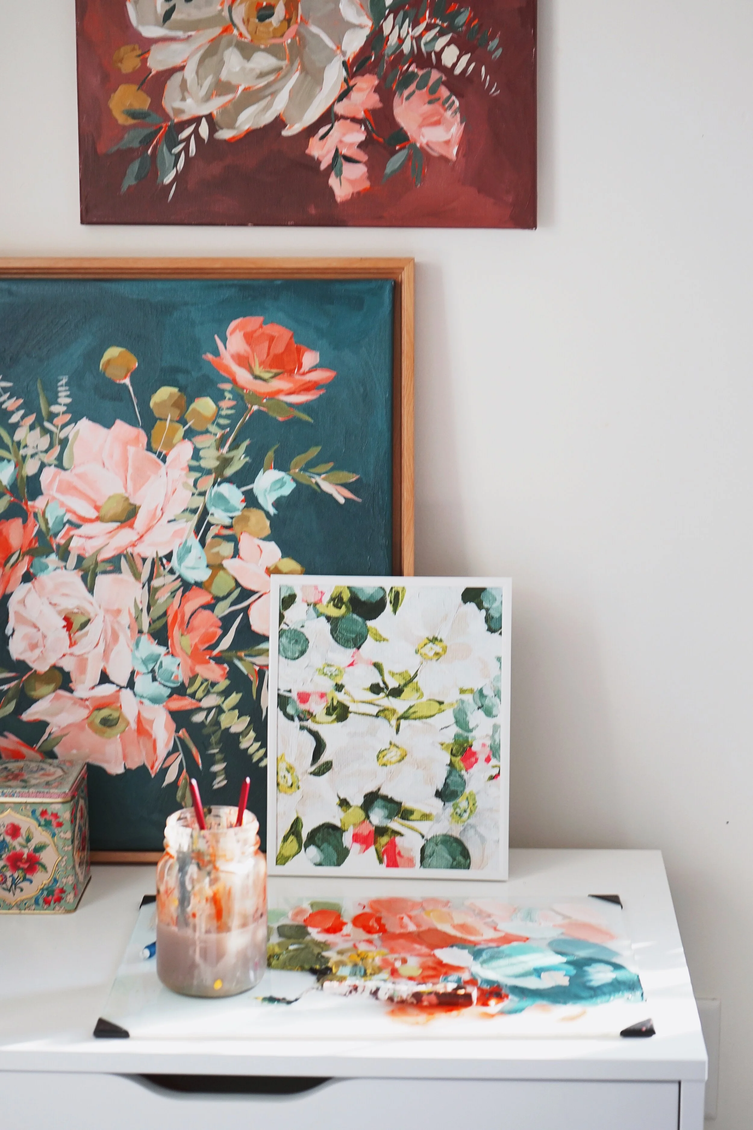 -31 floral paintings on 16” x 20” canvas